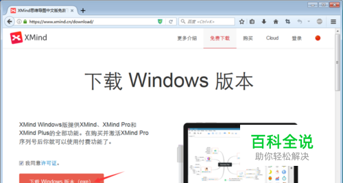 通过浏览器进入XMind官方网站:https://www.xmind.cn/download/,然后点击页面中的“下载Windows版本(exe)按钮”下载最新版的XMind软件;