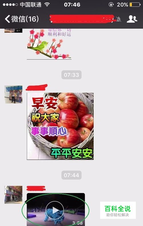 其实只需要两步: 1、保存小视频 2、发布朋友圈 3、选择视频 好了,闲话不多说,我们马上开始。 小编这里以iphone为例(安卓也是大同小异,只是选择视频的时候有点不同,其他都是相同的) 例如小编现在收到了一个小视频,如图中绿色标识。 点击播放