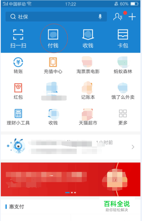 第一种方法:在首页界面点击付款,会弹出向商家付钱界面,在这个界面中,找到并点击乘车码,会弹出你的公交电子客票乘车码,用这个二维码扫码坐车即可。