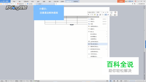 选择表格第一行,单击右键选择“边框和底纹”。