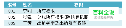 这时会弹出“操作员权限”对话框,点击左边列表中的操作员101李明,可以看到该操作员在100账套中已经拥有所有的操作权限。