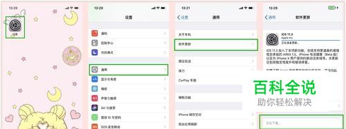 首先打开手机的“设置”程序——选择“通用”——“软件更新”(系统会自动检查当前版本,如果不是ios11.3版本请点击“下载并安装)——开始下载软件(如果手机点电量不足请边充电边下载)