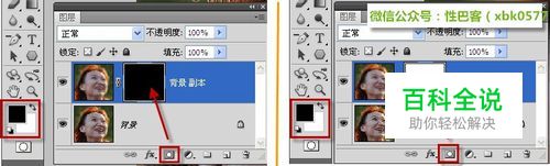 1.图层面板最下面有一排小按钮,其中第三个,长方形里边有个圆形的图案,它就是添加图层蒙版按钮,鼠标单击就可以为当前图层添加图层蒙版。(PS:工具箱中的前景色和背景色不论之前是什么颜色,当我们为一个图层添加图层蒙版之后,前景色和背景色就只有黑白两色了)