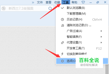 首先打开搜狗浏览器,然后点击右上角的“工具”,在下拉中选择点击“选项”