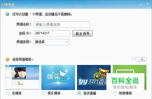 频道管理员登陆YY进入频道,在频道下方“频道模板”处选择“游戏直播”模板,这样频道就拥有了游戏直播的权限。