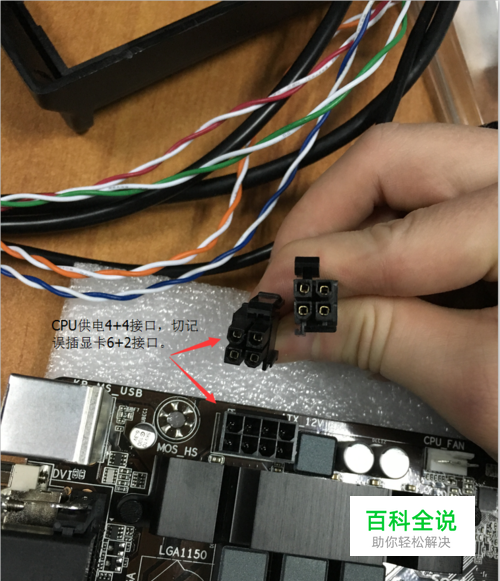 CPU辅助供电4+4,注意事项:千万不要插入显卡的6+2供电。如果主板是8孔CPU辅助供电接口,但是电源只有4PIN供电接线,可以插入主板CPU供电左边4个孔,或者右边4个孔,切记不可插中间4个孔