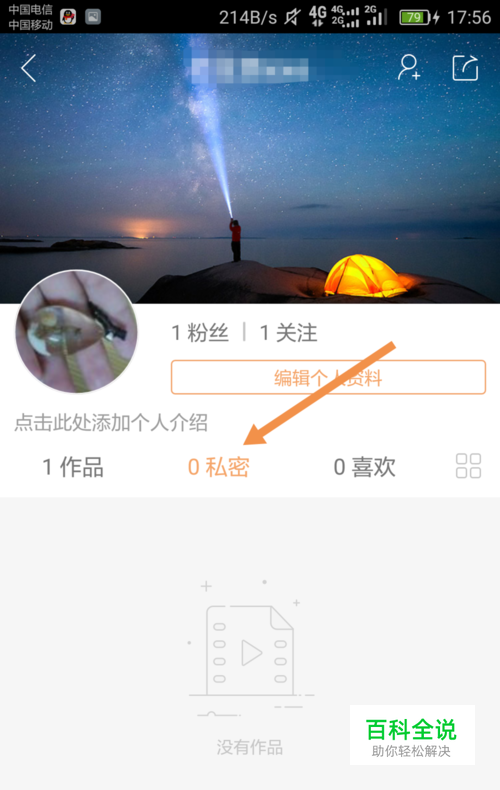 接着跟着海宝出来看看,诺,作品那里少了一个,然后隐私那里就多了一个,这个时候我们其实已经完成隐藏作品啦