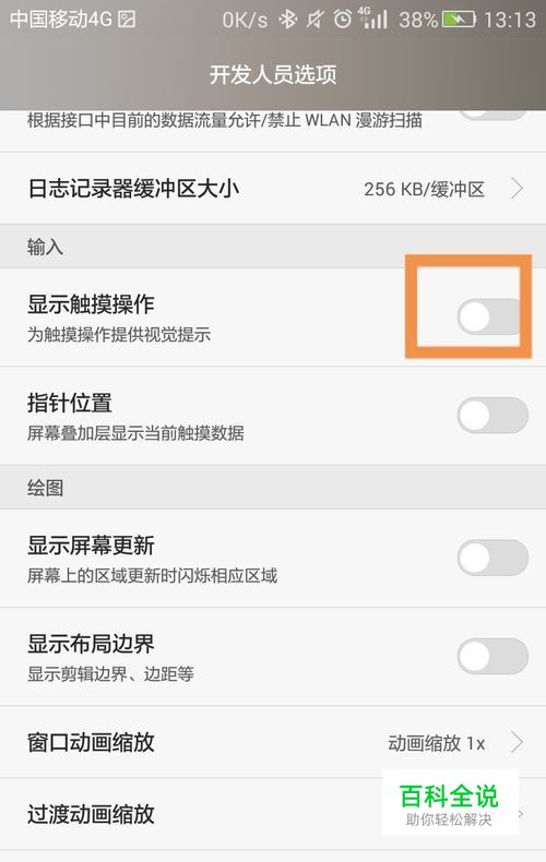 在【输入】中点击【显示触屏操作】右边的按钮。