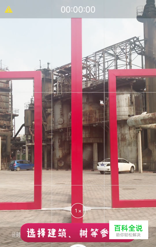选择建筑物、树木等参照物放在画面中间;