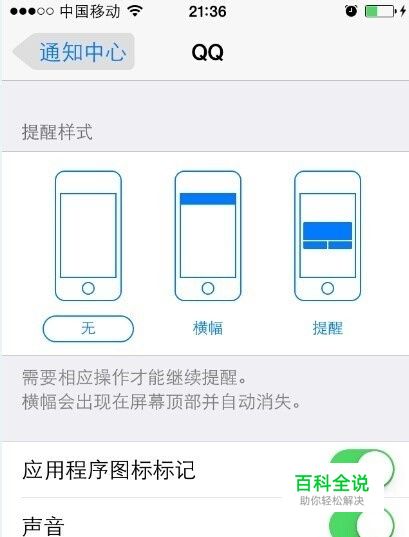 在通知中心设置界面,我们可以点选”横幅“或者”提醒“两个选项其中一项都可以。这样就消息就会有提示了。