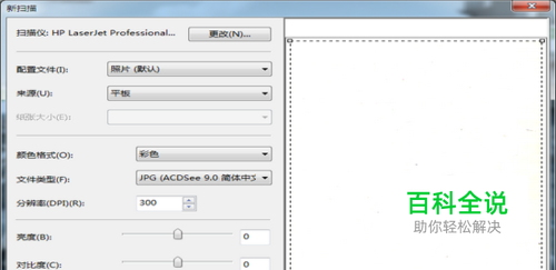 第四步,在弹出的对话框中,我们点击下方的【预览】按钮,如下图,即可以对需要扫描的文件进行预览操作,预览的图片就可扫描出来之后的样子,如果放歪了,或者没扫描全,可以重新放置再操作。