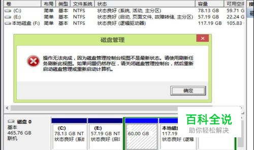 操作无法完成,因为磁盘管理控制台视图不是最新状态。。。”这样的提示,如下图,要如何处理这样的磁盘问题呢?
