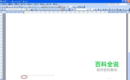 这时候返回文档中,在光标处你会发现右上方出现了编号“1”,文档这一页的左下方,一条下划线下同样出现编号“1”。