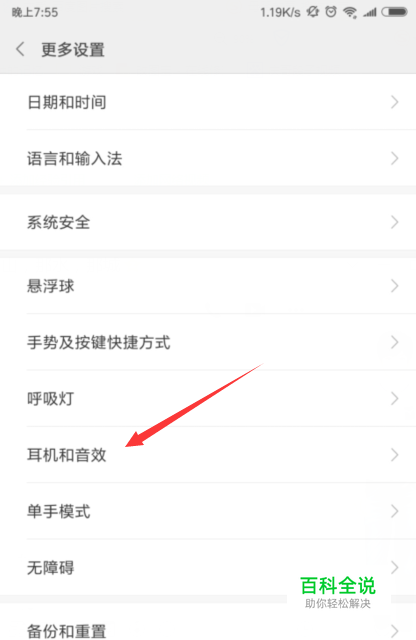 【更多设置】画面,小编接着触下【耳机和音效】,如图。