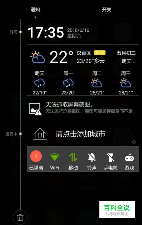 先来看下问题描述,在手机上截屏时,我们一般用按住侧面的主开关机键和音量减小键来进行,但有时,由于手机有自带的“手机管家”,对部分功能进行了优化停用,会出现“无法抓取屏幕截图”的结果,如下图所示