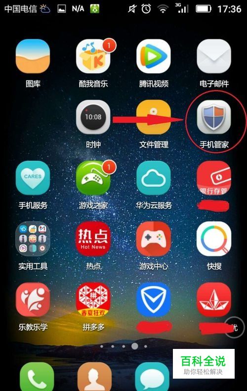 解决问题方法,如图,在手机桌面上,找到“手机管家”,触摸进入