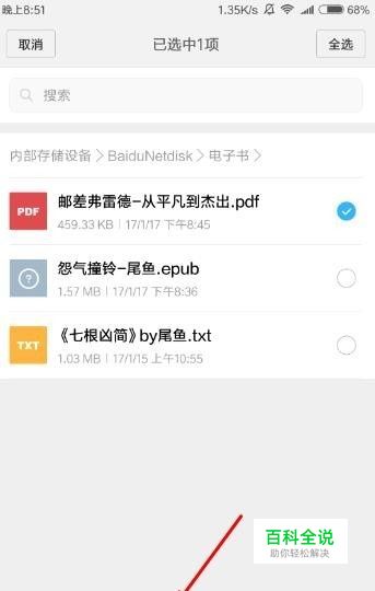 我们点击选择手机本地文件夹中的一个电子书文件,如图所示然后点击剪切或者复制
