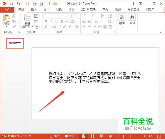 打开PPT这款软件,然后在编辑区里输入我们的文字,如图所示: