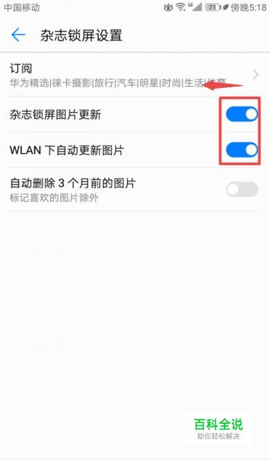 之后我们将弹出界面中的两个开关全部向左滑动关闭就可以了。这样我们就可以关闭杂志锁屏了。