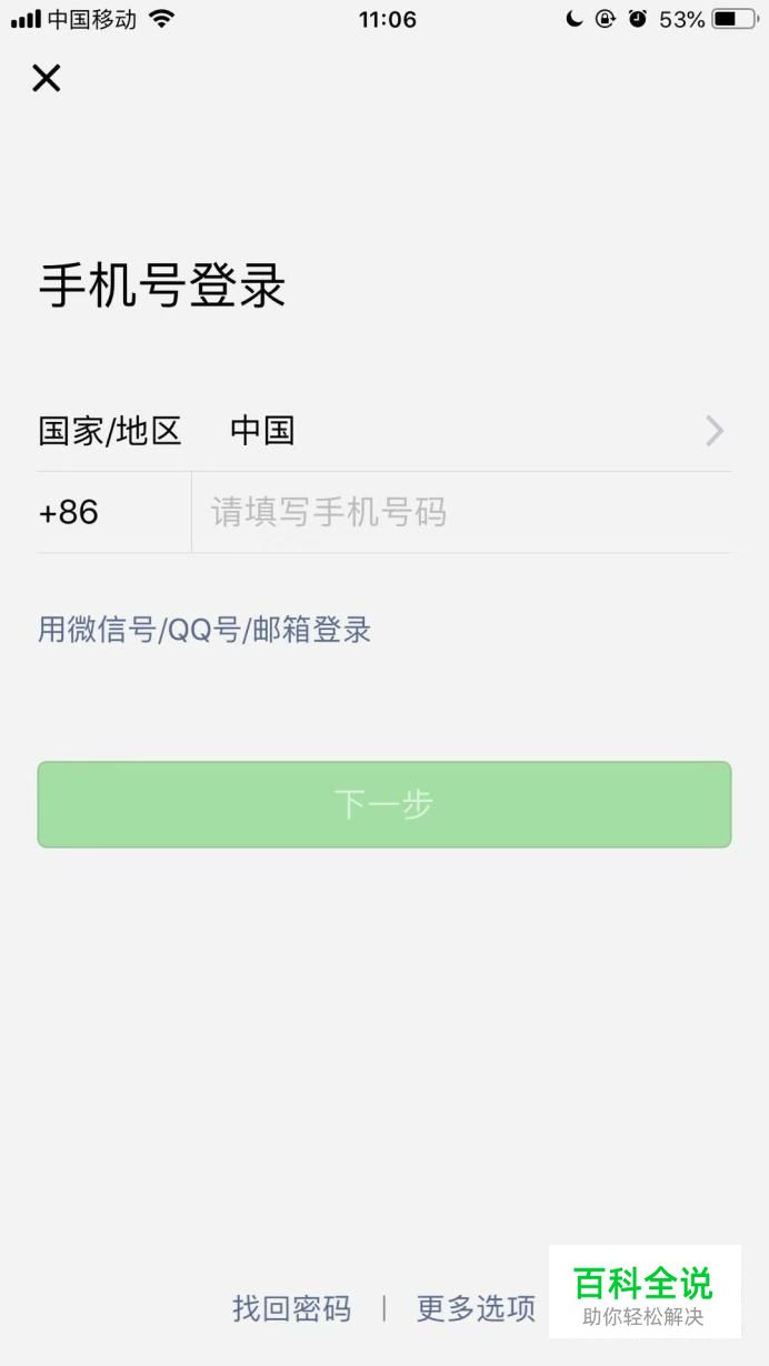 然后输入你的手机号码,并点击下一步,如下图所示。