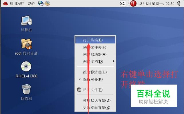 接下来鼠标单击右键,在弹出的菜单中选择打开终端选项,如下图所示