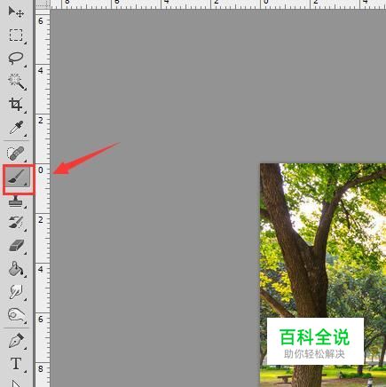 使用ps打开我们的图片,然后在图层里新建一个图层,在工具箱内找到画笔选项,如图所示: