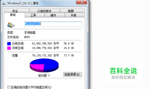 在出现的属性菜单中,选择<常规>项,选择菜单中部的磁盘清理。
