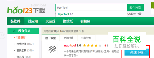 首先,打开 Hao123下载,搜索 Ugo Tool, 下载。