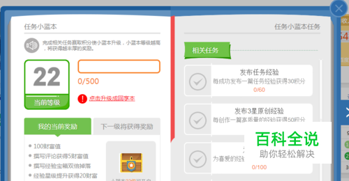 在我们参加了百度经验的回享计划以后,账户里有个任务小蓝本。每级都会有许多的任务等你完成。完成以后会给相应的奖励,那么里面的任务都应该如何完成呢?