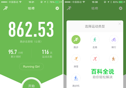 a.运动版块 咕咚把跑者最核心的跑步功能放在首页,进入页面后直接按下“开始跑步”按钮就可以跑步了,这对于初次使用者来说,非常方便。占据页面最大部分的是当期运动里程的总记录(里程、时间、次数),非常醒目,每次打开软件后对于自己的运动总状况一目了然。 在主界面左上角是当前的运动模式,点开后就会显示咕咚可供选择的所能记录的所有运动类型,目前咕咚能记录的运动有跑步、走路、骑行、滑雪、话柄、登山、跑步机等数据,覆盖面相对于我们大众运动着来说还是非常的全面。