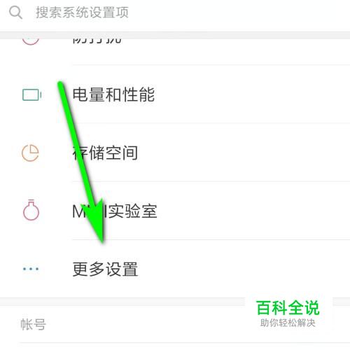 手指点一下手机桌面上的设置图标,打开手机设置界面。在界面中找到并点击:更多设置