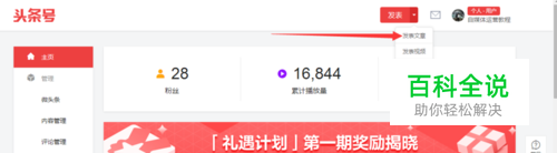 打开今日头条条号,选择发表文章