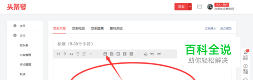 在平台文章编辑框上方找到添加图片入口