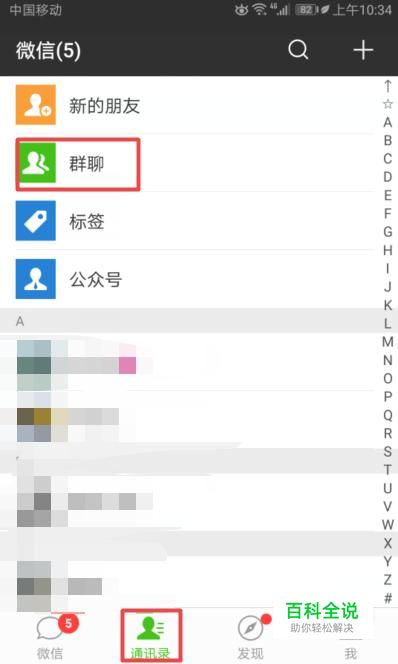 进入微信后,我们点击通讯录,然后我们点击群聊;