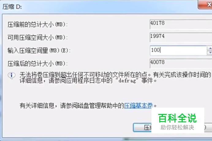 接下来在弹出的压缩卷的界面中设置一下压缩大小,如下图所示
