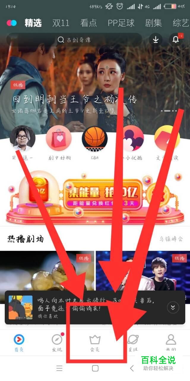 进入“优酷”后,点击“会员”