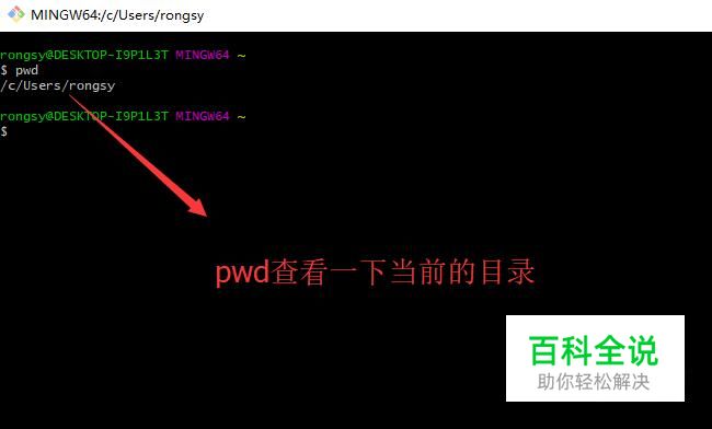 接下来进入到Git的命令行界面中我们用pwd命令先查看一下当前的路径,如下u图所示