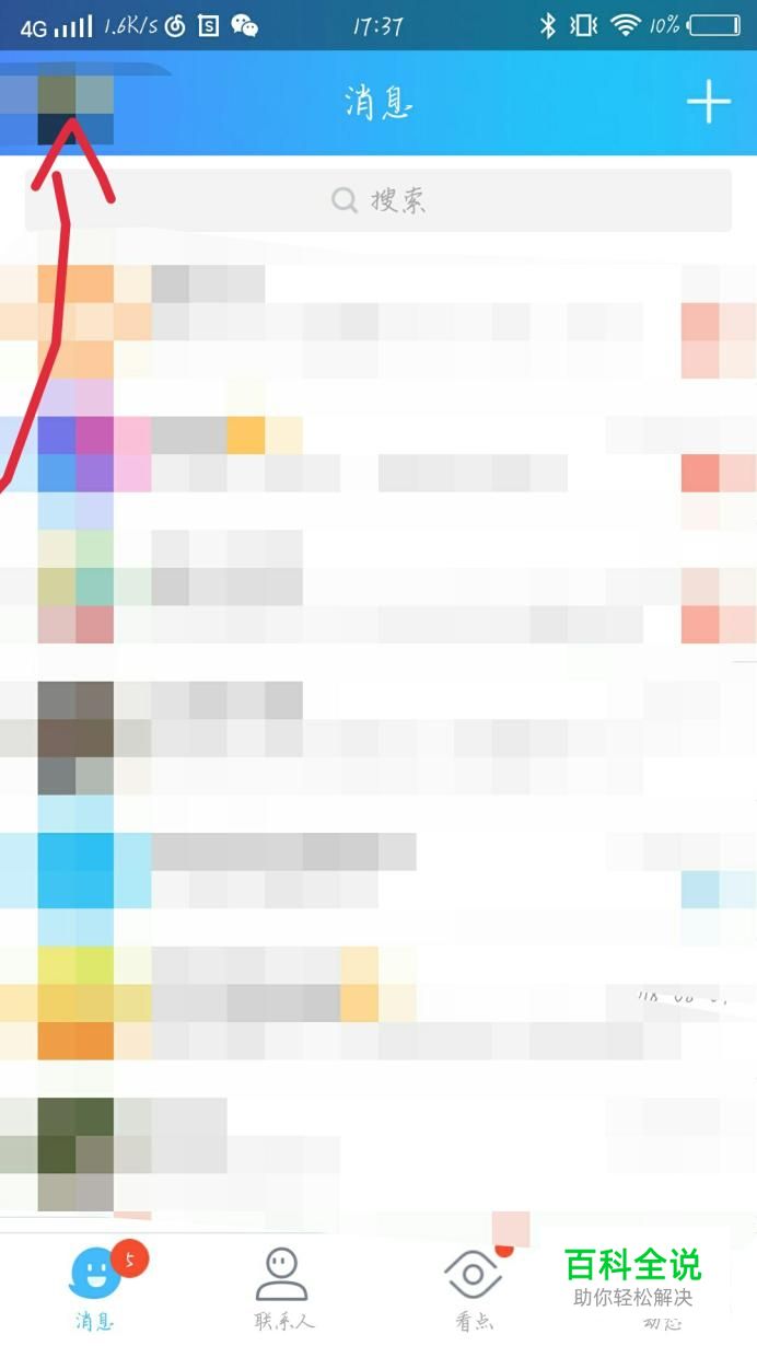 点击右上角自己的头像,长按,如图1箭头所示。你会看到出现一个新的界面,如图2所示。