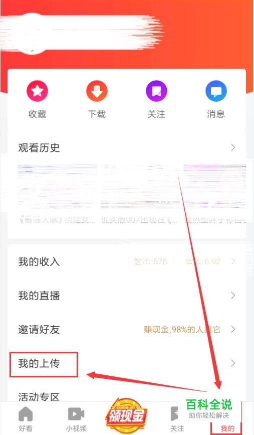 点击打开好看视频App,点击右下角的“我的”,找到“我的上传”。