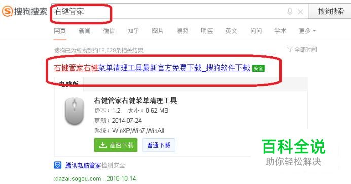 点击右键会卡死,主要是由于右键中加载的程序太多了,我们把它清理一下就能解决。首先,我们需要下载一款免费软件,浏览器搜索“右键管家”,安装到电脑中。