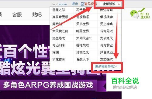 进入官网链接后点按界面右上角的全部游戏 然后点按其下方的更多精彩游戏