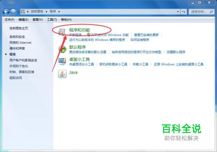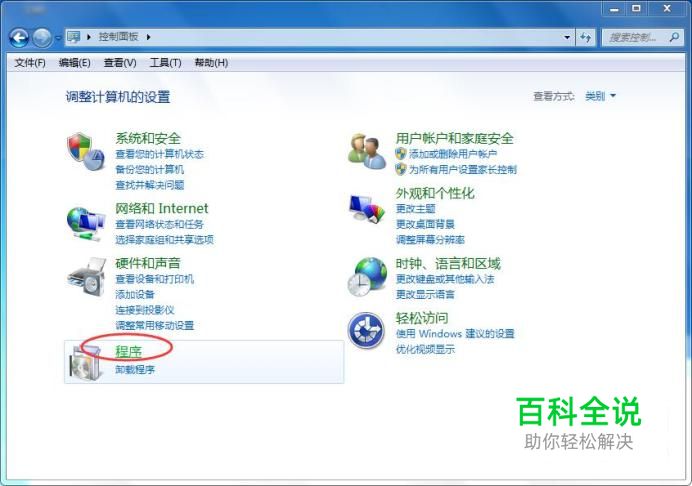 程序 打开控制面板,然后点击程序,如下图所示: