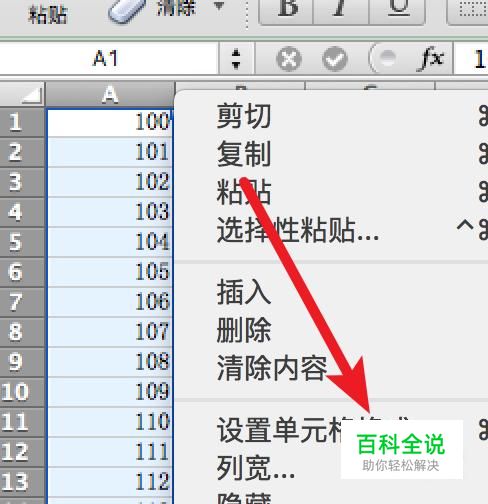 右键点击这一列,然后点击‘设置单元格格式’。