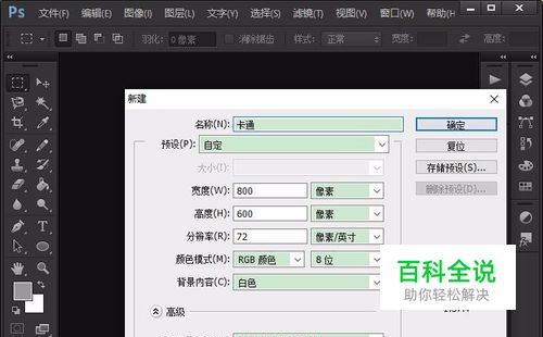 首先,打开photoshop软件,新建一个“ 800*600”的 白色背景,如图所示。