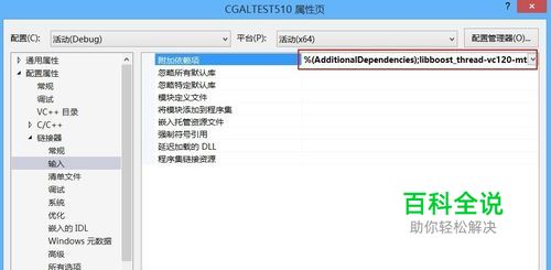 右击项目,选择“属性”--“链接器”--“输入”--“附加依赖项” 根据错误中的提示在下图右边的红色框内添加相应的lib文件