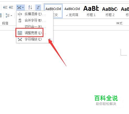 选择两个字的人名人名,然后在上面找到段落里的中文版式选项,点击该选项在其内找到调整宽度选项,如图所示: