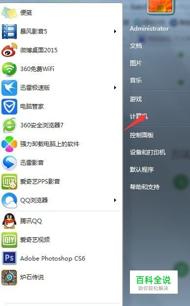 首先,点击开始菜单,点击计算机