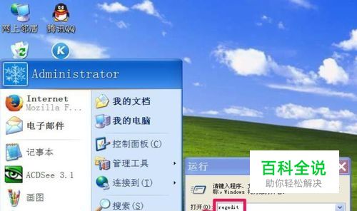 找到的方法,要修改注册值,这个不是问题,先进入注册表,进入方法:从开始菜单中打开“运行”程序,然后输入regedit命令,确定。