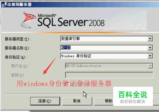 首先我们进入SQL Server Managment服务器登录界面,用Windows身份验证登录服务器,如下图所示