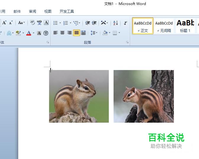 然后我们移动一下两张图片的位置,让他们重叠在一起,之后选中两张图片,然后点击格式;